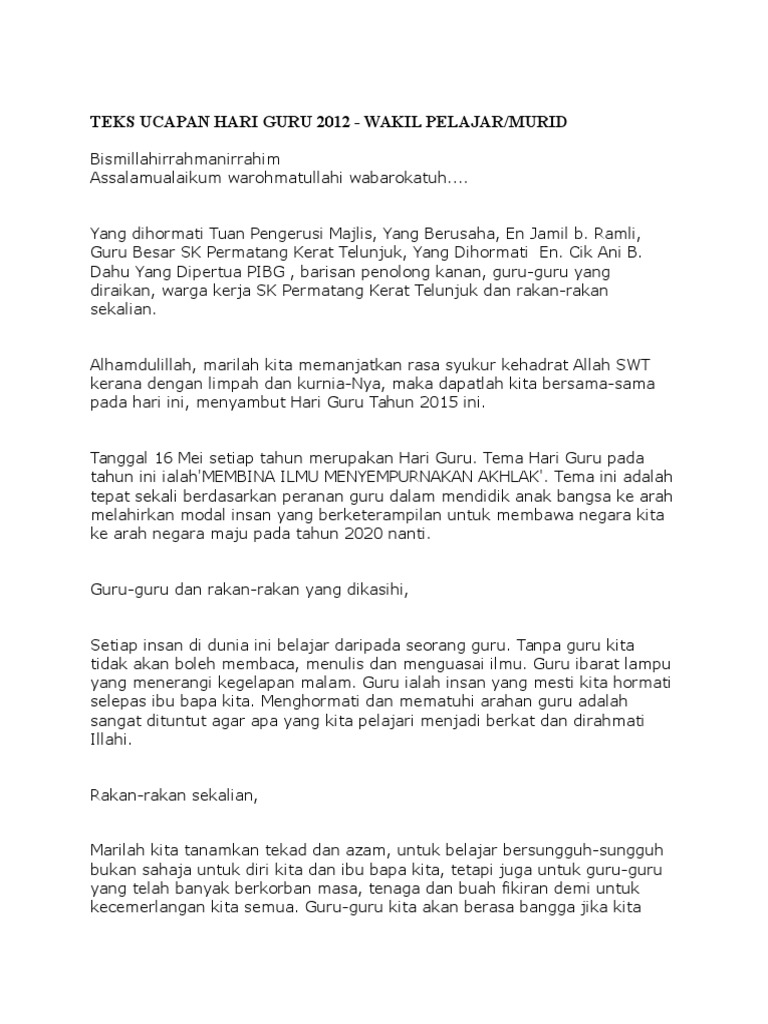 Teks Ucapan Wakil Pelajar Sempena Majlis Mohon Restu Pmr Pdf